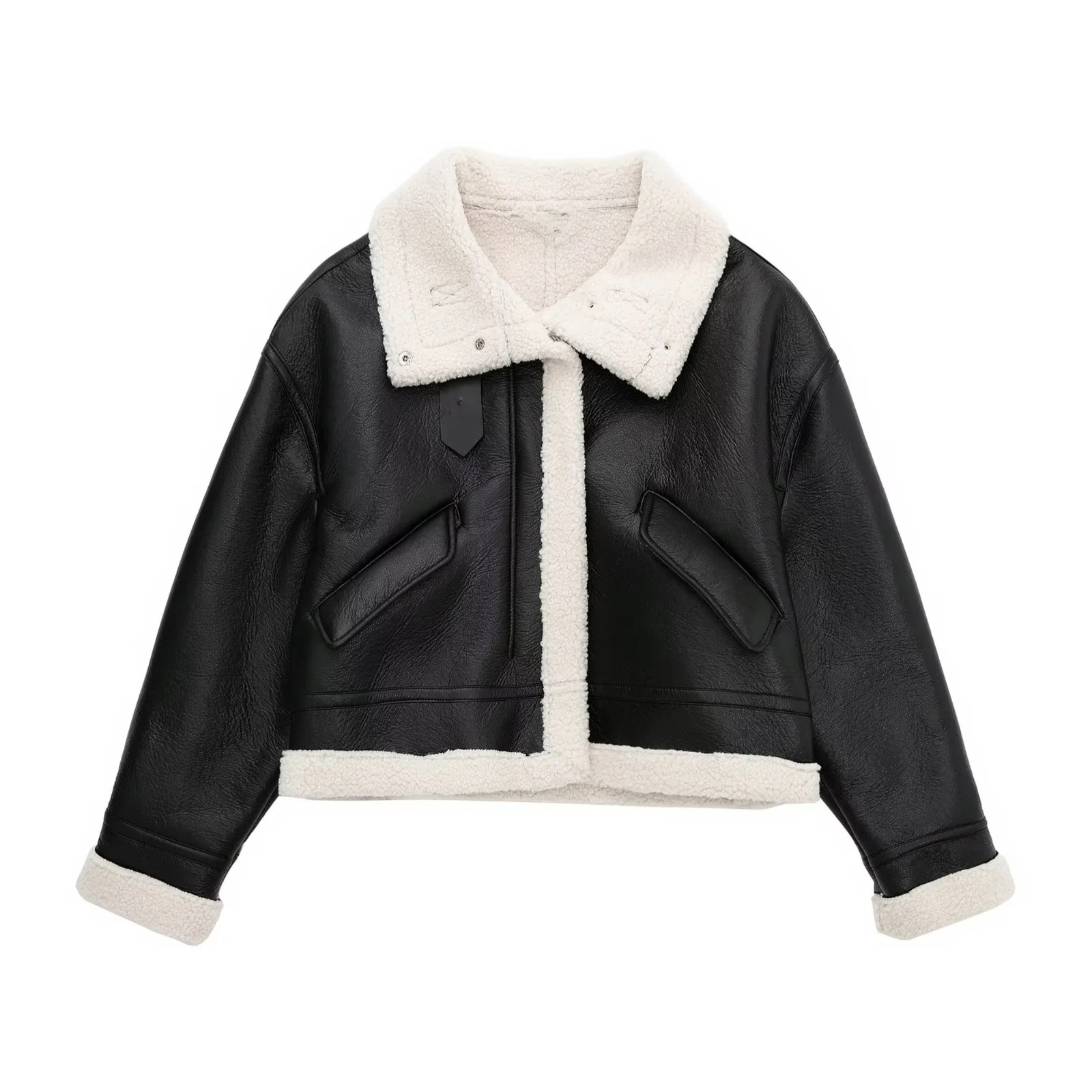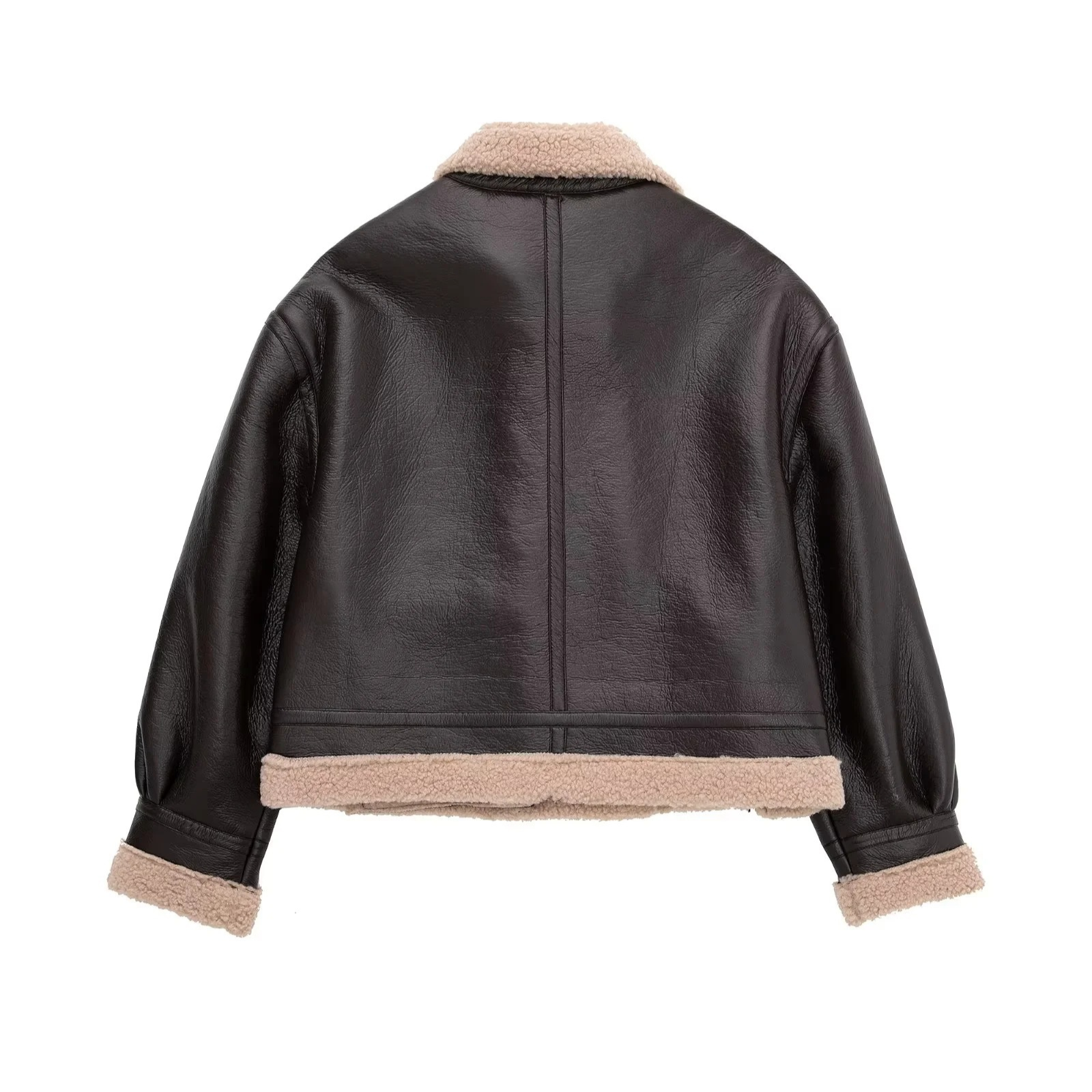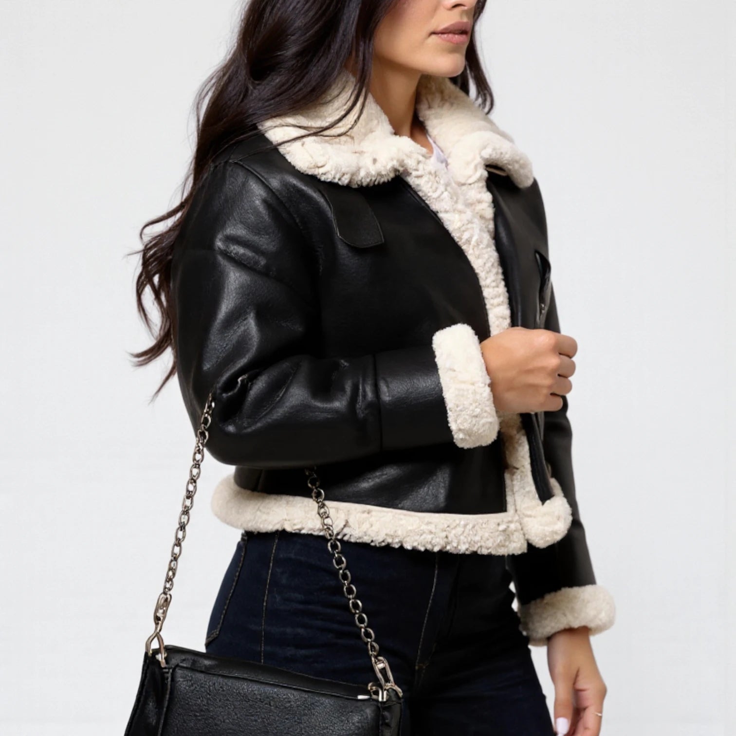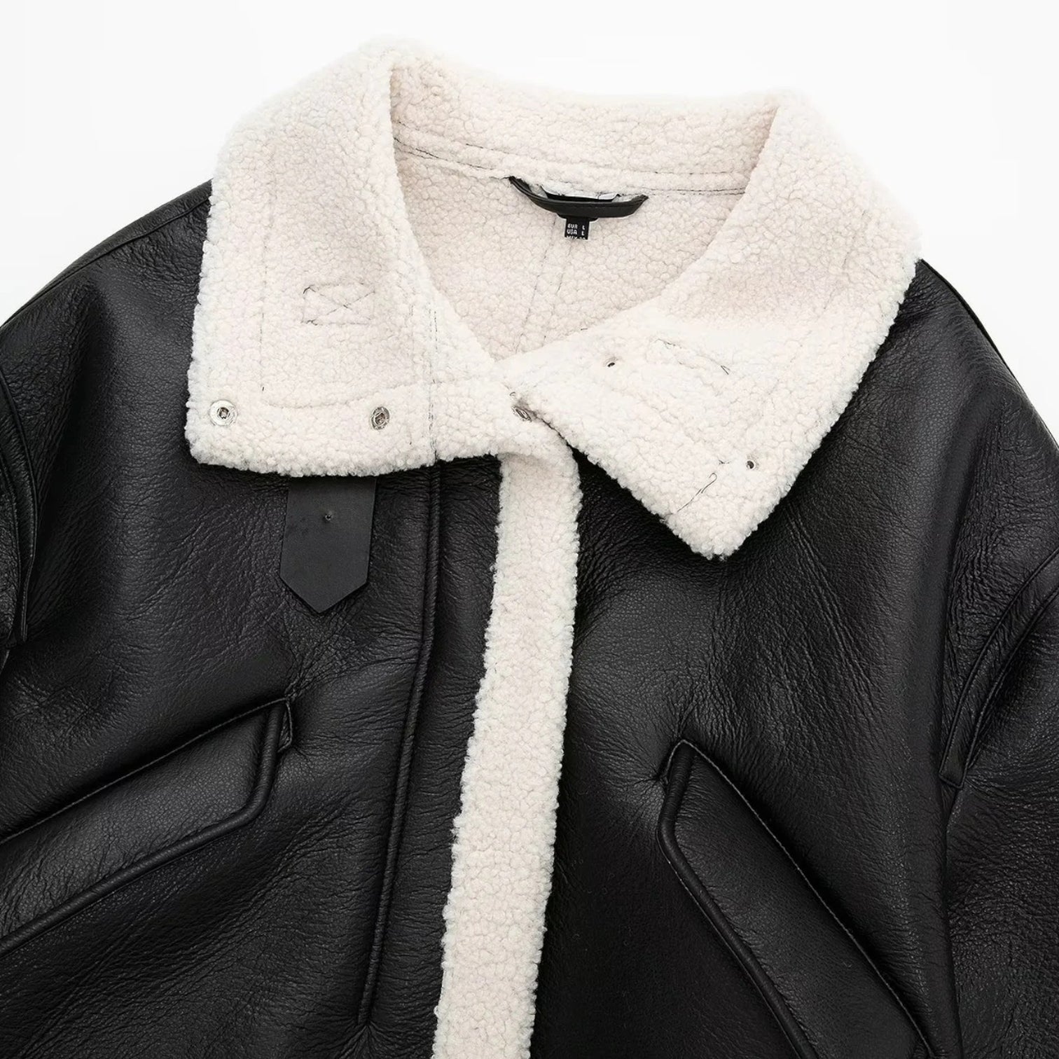 Sinta o toque ultra-macio do forro de lã (shearling) que te mantém aquecida, enquanto o exterior em couro (PU) bloqueia o vento. Perfeita para um look de impacto no dia a dia ou para uma viagem de inverno, ela é a definição de conforto luxuoso.