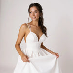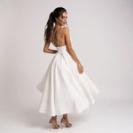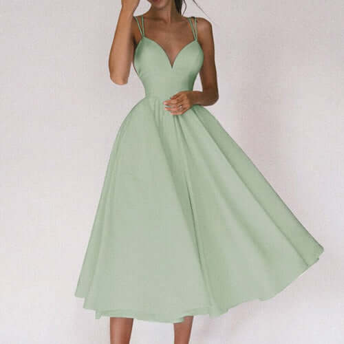 Sinta o caimento perfeito do decote V, que se completa com as delicadas alças transpassadas nas costas. A cintura é perfeitamente marcada, valorizando sua silhueta antes de se abrir em uma saia midi fluida que dança a cada passo. É a escolha ideal para um casamento diurno, um coquetel ou qualquer evento em que seu único objetivo seja se sentir deslumbrante.